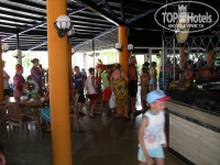 был в начале лета. вроде бы все неплохо, но 15 дней это перебор. еда несмотря на кажущиеся разнообразие день на 6-7 становиться вся одинакова на вкус. несмотря на начало лета отель был уже перегружен. в ресторане откровенно не хватало столов из-за того в частности, что небольших столов было немного, а вот огромных на 8-10 персон было с избытком. публика же сидящая на этих столах живописно располагала на на остальных стульях свои вещи. есть аквапарк который работает пару часов утром и пару после обеда - то есть не все время. так как был с детьми 5 и 7 лет, было сложновато чтоб они уже питались сами, персонал старался же все убрать - доели не доели, если я уходил с одним ребенком а другой привстал или отошел, то все считайте стола у вас нет. ужин идет всего 2 часа и мест впритык. Отдельно по поводу завтрака детский стол для завтрака находиться рядом со взрослым рестораном и причем в курящей зоне. очень оригинально если учесть что я тоже не курю. курить можно везде, в том числе и на детских площадках, аквапарке и у детских бассейнов. по крайней мере знаков запрещающих это нет, а пепельницы присутствуют. некурящих зон нет в принципе. понравилась тетенька на виолончели, которая играет на ресепш. В принципе и целом отель ничего, но абсолютно не для детей, несмотря на аквапарк. вход в море резкий - песчано-галечная смесь. каждые 3-4 дня переставали работать электроннные ключи. в номере на смете неплохая плазма и есть 1 российский канал. кондиционер работает по часам, но не очень, если бы я не засунул одну карточку в общий включатель, не примотал скотчем и на 3 языках что знал написал не трогать в номере был бы ад, а так кондиционер работал вроде все время, если конечно было электричество, которое пару раз в день обязательно пропадало, иногда пару минут, а иногда и часочек....