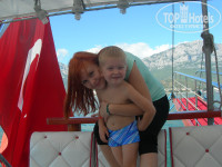 6. Море, пляж, экскурсии. Может пляж и маловат, но мы этого не заметили, т.к. навесы на пляжах, принадлежащих другим отелям, разобрали, и наш пляж «расширился», в тому же народу не так много уже было, так что никакой тесноты мы не ощущали. Идти до моря вообще недолго, минут 5, мы каждый день ходили с ребенком, вообще без проблем. Море отличное, чистое, но, конечно, уже остывает, все-таки октябрь. Тем не менее, мы купались каждый день! Экскурсии – Пегас цены заломил нереальные, поэтому мы последовали советам из других отзывов и поехали кататься на яхте через уличное агентство Гинза (она справа от выхода из отеля). И не пожалели! Во-первых, существенно сэкономили – 25 долларов с человека против 70 (!!!) Пегасовских, во-вторых, наша яхта была одна из лучших – большая, красивая, с алыми парусами, да еще и пенную дискотеку нам устроили! Страшилкам, которые рассказывал гид, мы не поверили (что людей забывают и т.д.) – внимательнее надо самим быть и следить за временем, тогда вас никто не забудет. Больше никуда не ездили, т.к. остальные экскурсии для ребенка, как нам показалось, будут утомительны.