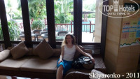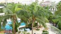 Вид из лоджии на 3 этаже как раз в верхушки кокосовых пальм - ляпота. Стоит ли брать номер выше чтобы видеть больше моря - море всё равно плохо видно, т.к постоянно стоит дымка переходящая то ли в марево, то ли туман. Вот ресторан на крыше отеля - это прикольно: там море, а здесь аэропорт (шума в номере от самолётов нет - все номера отеля в сторону моря). Кстати и коридоров в отеле нет - вместо них балконы и лестницы со стороны аэродрома.