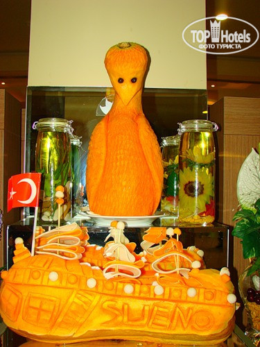 с 2009 года каждый май и октябрь мы проводим в этом отеле. у отеля свой запах, который чувствуется, как входишь в огромный лобби. напишу только что отель меняется к лучшему. в лобби над лифтами повесили огромную плазму. появились пакетированные соки во всех барах. айран в индивидуальных упаковках. везде, и на пляже, стоят холодильники с бутылочками воды. официанты в главном ресторане в обед и ужин лебезят. во всех номерах появились халаты и тапочки.