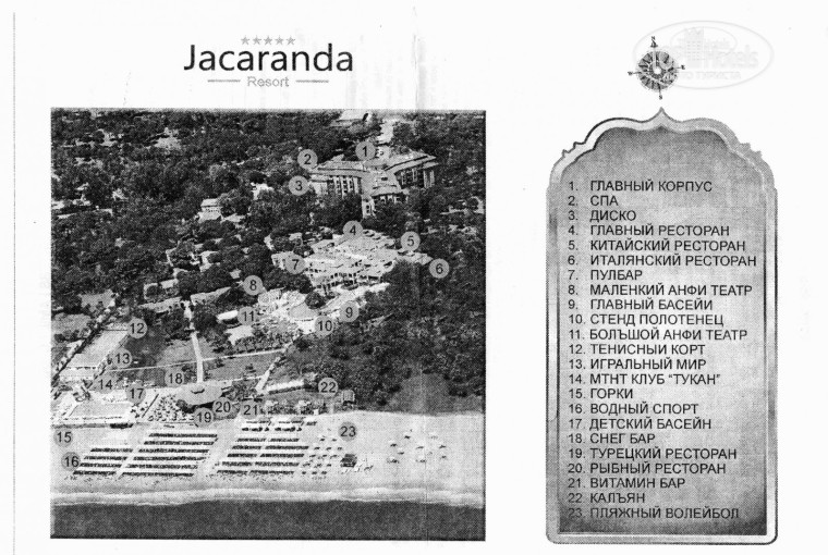 Проживали в отеле в четвером с ребенком и бабушкой с 08.10.2011 по 18.10.2011. Сразу могу сказать, что это наверное единственный отель, который не имеет нормальной схемы расположения объектов. На ресепшен нам дали схему, понять по ней достаточно сложно, хоть и на русском языке и без "немецкой части".