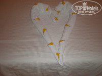 При заселении дали номер на третьем этаже, в этот день был сильный ветер и из окна сильно дуло и звук был такой, как будто в номере находилось стая волков )))) Балкон был не больше метра. Посидеть на свежем воздухе не получиться, т.к. там нет даже стульчиков. Решили менять. Просили дать на шестом этаже, сказали, что мест нет, приходите мол дня через два-три. За 10 $ дали на первом этаже с хорошем видом и с огромным балконом. Все работало исправно, кроме душа. Голову мыть было проблемно. Насекомых и прочей нечестии в номере не наблюдалось. Комнату убирали каждый день, чистое постельное и полотенца были обеспечены. Оставляли по 1 $ и получали взамен сердца и рыб из полотенец.