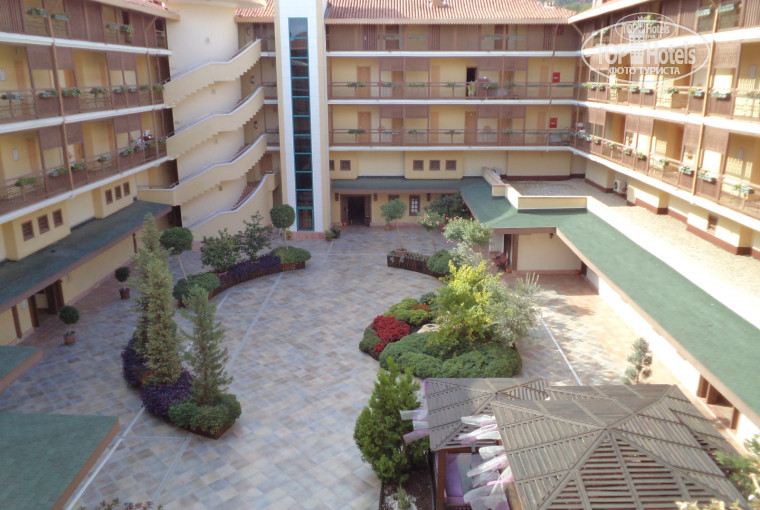 Зато походить можно по внутренней территории отеля ого-го как! между основным зданием и морем разбит целый парк, над которым изрядно потрудилась рука дизайнера, в нем поместились теннисный корт, аквапарк, бассейн и несколько маленьких жилых корпусов (в них можно поселиться поближе к морю)
