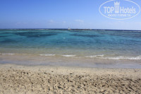 МОРЕ чистое, из-за рифов очень маленькие волны, зато рядом с пирсом довольно большие. Рыбок много, видели ската, мурену. Народ видел дельфинов и постоянно приплывает черепашка. До понтона лучше идти в тапках, народ ходил просто в шлепках. Тапки 3$, ласты 7$. Песок. С правой стороны пляжа при приливе глубина где-то 1,2 метра (безусловный плюс, т.к. нам в большинстве своем было лень идти на понтон, а например у соседнего отеля максимальная глубина по колено))