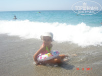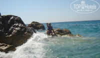 Пляж небольшой, заход в море ужасный-каменные глыбы, мы всегда уходили налево ближе к скале- там замечательно, песок и мелкая-мелкая галька. Море просто супер!!! Чистейшее, теплое, 29 градусов, волны были каждый день, детям особенно нравилось.