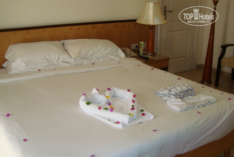 поселили в 4 корпус в номер на 1 этаже, сразу выход к бассейну. нам это понравилось. номер просторный, мебель старовата, не не раздолбана. убирали и полотенца меняли ежедневно. воду давали каждый день по 1,5 л бутылке, нам хватало. кондиционер работал хорошо, в номере всегда было прохладно. уборщику давали несколько раз чаевые по доллару, один раз выложил сердечко из полотенец и цветами украсил; дал воду 1 раз 2 бутылки, что больше нормы; бутыльки с шампунями и гелями по 2 комплекта оставлял.