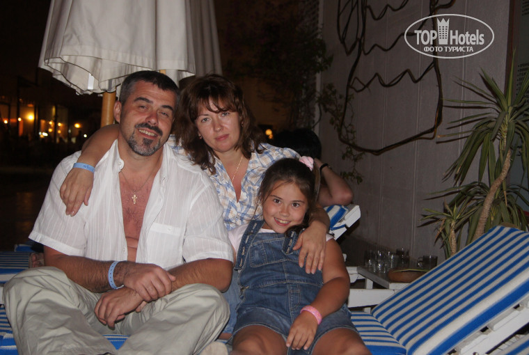 Отдыхали в этом отеле с 26,10 по 04,11 три семьи. Прилетели утром, заселили через полтора часа. Эти полтора часа даром не прошли - мы с другом допили коньяк(недопитый с шереметьево) и познакомились ещё с одной семьёй, а нашы жёны с детьми исследовали всю территорию.