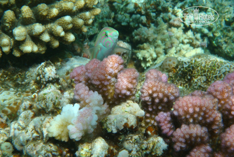 Сегодня закончился 2-х недельный отпуск в этом отеле. Начну сначала - нас было 3 семьи и соответственно заняли 3 номера. В номере 723 не было горячей воды (+неработающий холодильник) - перереселили через неделю в номер 151 с горячей водой, но с телевизором у которого пропадал звук.У друзей в номере 928 через день забивалась канализация, а в номере 927 не работал телефон. Номера просто УБИТЫЕ !!! По терриртории - приятно пройти вдоль ручейков но работают не все, дорожки уже просто сыпятся, а здания просто облуплены... Качество питания - особых претензий нет, но организация... В главном ресторане на три зала (улица, левый и правый внутренние) две раздачи (третья раздача в правом зале почему-то не работает) часто с очередями и даже очень часто от отсутствия чистых тарелок... На пляже бармены просто дебилы (понятно что мусульманам этого не понять) - наливают полный поднос стаканов с пивом и затем уже раздают теплое негазованное пойло. Места на пляже (под зонтиком и на мягком новом лежаке) надо занимать утром до 8-00 и как минимум отельным полотенецем (книжку, ласты, парео... будете искать потом по пляжу либо под лестницей возле бара у администратора (он у вас их и заберет с занятого вами лежака). Пляжное полотенце можно получить только в то время когда уже все места заняты либо не сдавать, а пользоваться тем что получил в первый день (либо договариваться...). Риф и живность - просто СУПЕР!!!! Есть все и красочные кораллы и наполеоны, скаты, мурены.... Заходить с пантона удобно и недалеко от берега. ИТОГО - отель дерьмо, море супер!!!!