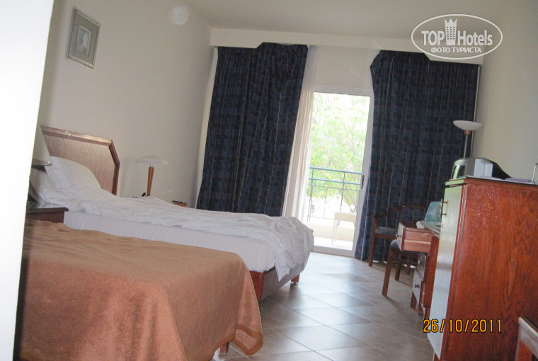 Заселение (отдельная песня). Приехав в отель в 13.00 и вручив, как предупредили в турфирме коробочку российских конфет, ждем заселения. Тимур, что работает на ресепшен, протягивая мне карточки и ключ от номера 5126, шепчет, что я буду молиться за него, что он дал мне классный номер. (В памяти всплывет, что где то я этот номер видела!) Грузим чемоданы и себя на мобиль и едем заселяться. Водитель-араб привел в номер, поставил багаж и, сломал карман для эл. ключа. На мой вопрос - кто будет чинить - сказал, что говорит только по-английски и ушел, громко ругаясь, что не получил чаевых. Про этот номер читала в отзывах - все сошлось - грибок в душе, облезлое и ржавое зеркало, мятая и ржавая мусорка, откровенная пыль на мебели и грязные полотенца, сломанный карман для эл. ключа - и это всё в отеле 5*! Круто! Сгребаю в кучу сумки, чемодан и ребенка, иду на ресепшен. Тимур делает удивленные глаза и спрашивает что не так? Перечислив все "прелести" номера, говорю, что так не пойдет и молиться за него не получится. Он делает оч недовольное лицо, долго что-то ищет в компе, весело общается с другими клиентами, игнорируя нас и вот, минут через 20 выдает нам новый номер 3204. Так получилось, что носильщиков не было и свободным оказался тот же чел, что увозил нас в первый номер. Презрительно на нас взглянув, ходил туда-сюда мимо нас, затем все же показал на свой мобиль. Чемоданы грузим уже сами! Подвез нас уже только к корпусу, указав перстом куда нам двигаться. Правда, получив 1 бакс сразу научился говорить по-русски))) Рядом оказался уборщик и пришлось прибегнуть к его помощи, чтобы открыть дверь. Получив 1 бакс, заодно он заменил неработающую настольную лампу и принес вторую бутылку холодной воды. Номер оказался большим по площади с 2-х и 1-спальными кроватями.