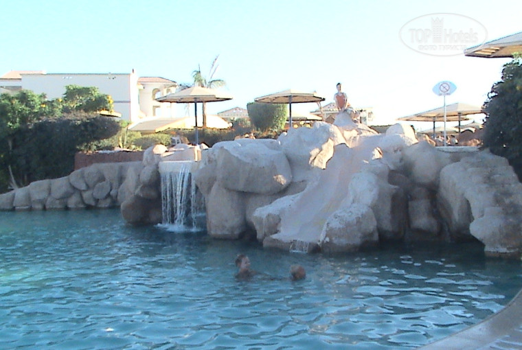 На территории 4 бассейна - 2 из них с подогревом. В 2-х других вода очень холодная. Обратите внимание те, кто едет с детьми: в одном из холодных бассейнов расположены детские горки. Вода там реально очень холодная. Наиболее теплый и востребованный бассейн - у бара, там где пещера с водопадом. Моему ребенку он очень понравился, можно также побродить в речке над бассейном. Второй теплый бассейн - для малышей, где горка в виде лягушки. Также на территории есть соленое озеро(за бассейнами у моря), но там никто не купается - не могу сказать почему, возможно вода грязная.