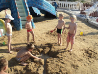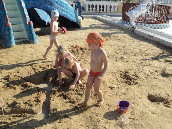 В отношении бассейнов неоднозначно. Где взрослые горки, там вода холодная, в детских бассейнах вода очень холодная (не верти никому - не подогреваются они!!!!!! даже после разговора с менеджером, т.к. заявляют при продаже отеля, что детские бассейны подогреваются). Подогревается только один взрослый бассейн, там собственно и купался деть на круге. Детские горки стоят на площадке с песком. Кататься на них без воды невозможно. Но маленькие детки нашли выход из ситуации, стали в своих ведерках воду из детских бассейнов таскать. Один поливает, другой следом катится. Вся детвора сбежалась кататься. А уборщик их всех разогнал и наругал на своем языке, мы родители конечно вмешались и пригласили менеджера отеля. Менеджер отеля разрешил детям таскать воду из бассейнов, но подогревать бассейны так и не стали! Уборщик больше претензий не предъявлял, во всяком случае нашим детям) А так мальчишки: и русские и немцы и поляки играли в этом песке и были довольны.