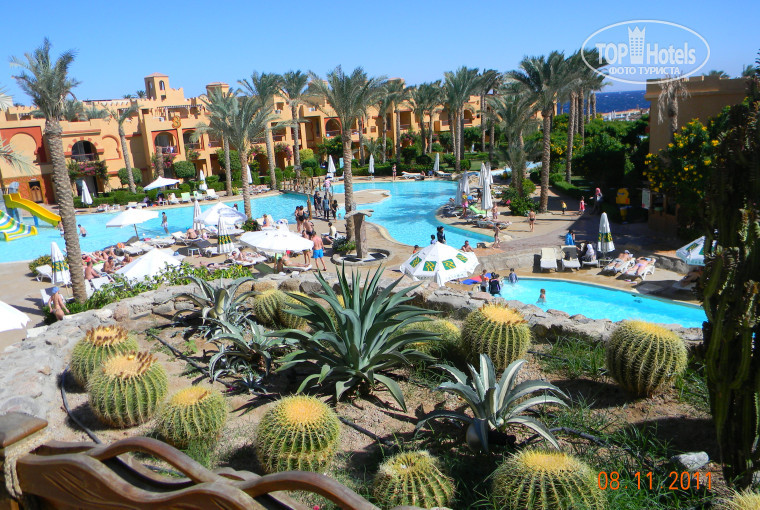 Территория отеля большая, много бассейнов, шезлонгов хватает всем, пангтон метров 60. Очень много зелени, есть горки, но не очень большие. Классная сцена для вступлений.