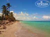 2. Пляж. Лежаков достаточно, приятный белый песочек, но в течении всего дня с океана выбрасывает водоросли на берег (его чистят), но в воде их достаточно и купаться от этого не очень приятно. Продавцов навязчивых замечено не было.