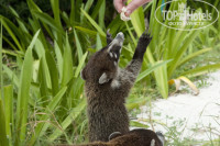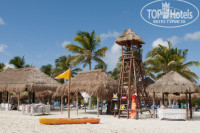 Пляж. Он делится на 3 части. Левая (если смотреть от отеля на море) - для платинум номеров и бунгало, центральная - для простых смертных из джуниоров, лежаков малова-то, найти свободный получается далеко не всегда, зависит от времени и погоды. Однако первые две линии лежаков (они полосатые) для ренты 15$ за два лежака и зонтик на весь день. Можно и прост на полотенце улечься на песок, никто слова не скажет вообще. Правая часть немного лежаков и куча массажных мест, а также волейбольная площадка. Еще правее лодки/скутера и опять все зеркально. Обратите внимание на спасательную будку, на ее крышу, там всегда сидит пеликашка :) В море есть рыбки, можно покормить хлебом, прям из рук вырывают. Но немного попахивает вода, в принципе не мешает. На пляже есть бар и закусочная с хот-догами и бургерами, а также прикольные животные все их называют по разному (nasua-nasua, coatia, насухи, мы прозвали нюсь-нюсями) На фотках их видно, прикольные животные, любят хлеб и мясо, овощи не едят, в принципе безобидные Если их не хватать, гладиться не даются, но аккуратно мелких можно погладить. Охранники их гоняют. Выходят стаями из лесочка особями штук по 20-30 на запах еды). Также на территории много игуан, выходят погреться на солнце, причем чем мельче тем менее бояться людей как ни странно, черепашку еще видели. Территорию конечно просто вылизывают... идеальная. Анимация слабая, вечерняя есть, и по слухам неплохая, но мы там не были т.к. русского человека смаривает к 6 часам наповал и за две недели мы ложились примерно так всегда, ну до 9 дотягивали))) зато и просыпаешься как дурак и смотришь рассвет от и до :) потом первым у двери в ресторан на завтрак) в 7:00