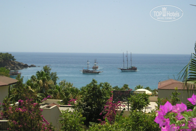 Номер – хорошо. Типичный стандартный набор (за что, собственно, было и заплачено. Для особо привередливых имеются сьюты и т.п.) Телевизор – 40 каналов, 2 русских. Сейф – бесплатно в номере. Балкончик очень симпатичный, увитый цветами. Кондиционер индивидуальный. Нам, совершенно неожиданно, без всякой ругани на ресепшне и без денег достался прекрасный номер с видом на море в тихой, зеленой зоне, в удалении от пляжа, бара и т.п. От бассейна идти ровно 3 минуты (засекали по часам специально). Да там и до самых дальних домиков идти 5-6 минут не торопясь. Правда, в горку, но это даже полезно.