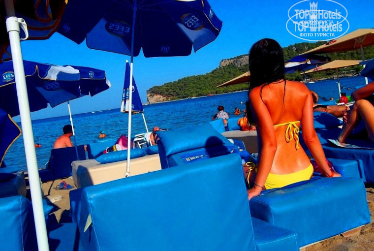 ну так вот. поехали отдыхать с подругами (втроем) 2го сентября. прилетели только в 9 вечера, жутко хотелось есть, но ужин уже закончился в 9. так что мы попили кофе, перекусили яблочком и отправились в номер. регистрация заняла минут 10-15. номер тоже устроил полностью, три кровати, вид во двор, да мы в номере практически не появлялись, так что претензий по этому поводу практически нет. почти. насчет уборки и смены белья могу выразить недовольство. убирались не каждый день и не особо хорошо. даже когда туалетная бумага закончилась нам не принесли новую,хотя уборка в тот день была. кто-то писал, что гид смотрел как на гавно ))) Унас был нариман, мы вообще на него не обращали внимания. здоровались когда сталкивались на обеде и все ) ну раз коснулась тема еды... однообразие надоело!!! но мы когда слишком уж не хотелось курицы и арбуза заезжали в ресторан и ели что хотели. насчет анимации не могу ничего сказать, утром мы вставали прямо перед обедом, кушали, уезжали на море, приезжали к ужину, потом шли в номер, собирались,умывались и уезжали на дискотеку. возвращались утром и так каждый день почти. но с тем что это как дом престарелых согласна!!! если сидеть весь день возле отеля и в полночь топать спать можно сойти с ума, отдых у бабушки в деревне и то веселее был бы. ни разу не видела там аниматора (был ли он там вообще) отельский пляж не видела ни разу, но говорят он ужасен. в первый же день познакомилась с хорошим человеком в отеле и он нас отвозил на нормальный цевильный пляж. обслуживание нормальное, только вот когда после массажа мы все в масле зашли в "ресторан" нас чуть пинками оттуда не вышвырнули. при чем мы были в парео. понимаю, что ттам не принято, но можно было подойти и попросить одеть что-то другое (мы одежду боялис испачкать в масле) а не орать истошно и руки распускать.в целом все нормальные, только вот рускоговорящих буквально пара человек. в общем отдых удался, отель особо не расстроил,наверное потому что меня там почти и не бывало, но постоянно там сидеть без всяких развлечений-скукота!!!