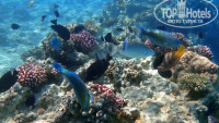 Да и не зачем, когда рядом такой потрясающий пляж и рыбки! Пляжем не устаю восхищаться, есть и песчаная лагуна, и красивые кораллы с рыбками. На рыбок смотреть можно вообще в 2х метрах от пирса, кораллы поживее и покрасивее в 40 метрах. Моя мама носит очки, поэтому сначала даже пробовать с маской плавать не хотела, отложила на предпоследний день, в итоге последние два дня даже со своей близорукостью не вылезая целый день обплывала все кораллы и восхищалась. Такого подводного мира вы не увидите больше ни в одном отеле Хургады. Обязательно советуем приобрести подводный фотик или бокс. В прошлый раз мы били без оного, в этот раз привезли кучу фото и видео подводного мира и наших ныряний-плесканий. Для детишек, пожилых и тех, кто не любит рыбок - есть превосходная песчаная лагуна с чистым заходом.