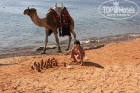 Территория отеля очень зеленая, красивая, чистая. Пляж отличный, сначала песок (есть где детям поплескаться) дальше мелкая галька, есть рифы с кораллами и рыбками. По берегу каждый день ходит бедуин с верблюдом, можно покататься и пофоткаться (за денежку, конечно). Погода постоянно менялась один день свежо (хочется кофточку пододеть), другой солнечно и даже жарко, но на пляж лучше идти рано утром, после 12час поднимается ветер и выходить из воды дискомфортно.