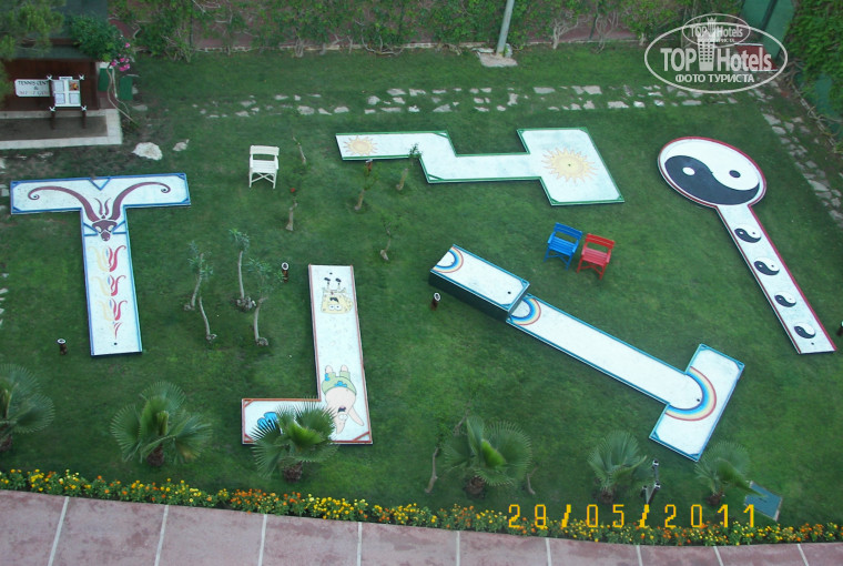 Расположение отеля очень удачное. Рядом нет оживленных дорог. До Белека можно добраться на такси, но мы ездили на тракторе(доллар в один конец, дети бесплатно). Территория большая, зеленая, ухоженная, хорошо спланированная. По территории протекает ручеек. От входа до главного корпуса проходит тенистая алея. На территории четыре бассейна. Один большой с горками и пологим входом. Второй - прямоугольный 25-ти метровый бассейн. Еще есть релакс, но до него мы так и не дошли. Бассейн в главном корпусе с подогревом и джакузи, Но там хлорки… Мы были в начале сезона бассейны чистые. Горки работают о расписанию, всегда присутствует несколько спасателей.