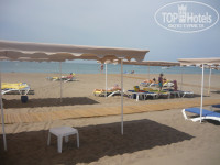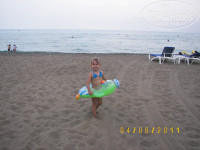 До моря надо идти через речку по мостику, который иногда разводят, для прохода карабликов. Пляж песчаный, протяженностью метров 200 -300. При входе в море полоса гальки, затем опять песок. Вход пологий. Утром вода прозрачная. Присутствие речки не сказывается. Она вытекает в сторону отеля цезарь. Свободные лежаки были всегда. Мы приходили и утром, и днем и вечером и всегда могли найти четыре лежака рядышком. Чисто, убирают каждое утро и в течении дня. Но Опять все зависит от отдыхающих. На пляже кроме бара есть кофемашины. Души и кабинки по всей протяженности пляжа. Зонтики, шезлонги исправные. Пляжные полотенца по карточкам меняют неограниченное количество раз около бассейна и на пляже. Полотенца чистые, махровые, желтые.