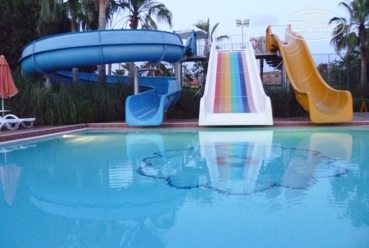У отеля достаточно большая территория, внутри: чисто,комфортно,уютно. Имеются различные развлечения. Очень понравился хамам(хоть и дороговато-30 долларов), наличие бассейнов и баров в непосредственной близости. Есть 3 горочки,но небольшие. Мы ездили в аквапарк другого отеля (Троя) -супер! Имеется свой пляж,но вода грязная! Советую съездить на пляж Клеопатратам и песочек и водичка чистая. Еда была различная,и в кафе и на улице,голодными точно не останетесь! Уборка каждый день,хоть мы чаевые оставили только в последний день, каждый день у нас было убрано. Аниматоры некоторые понравились,а вот некоторые были тухловаты. Рядом приезжает базар,на котором все продается по дешевке (по средам). Также неподалеку есть местный базар,где есть все,что душе угодно. Сам номер был большой, с верандой. Телик,кондиционер,все работало!