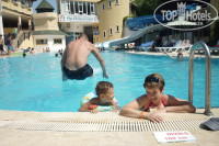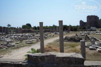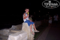 Первое впечатление - шок. Я пять раз отдыхала в турецких четверках и таких обшарпанных ресепшенов в жизни не видела. Да и сам отель снаружи выглядит откровенно бедным (особенно после того, как мы проехали кучу красивых "пятерок"). Второй раз я ужаснулась, когда увидела столовяк (капец, по-другому не назовешь). Третий - комнату (вопиющая бедность). Но потом вспомнила, сколько отдала за путевку и успокоила себя тем, что чудес не бывает: ну не может за такие деньги быть суперского отеля! Но не смотря на все эти грустные впечатления, отдохнули с мужем и сыном замечательно! Во сто крат окупалась вся эта общарпанность отличными людьми вокруг! Турки, таки зе бест вам! Спасибо за улыбки (и по фиг, что они за наши деньги)! Рекомендую отель непритязательным семьям с детьми (их здесь очень много), тем, кто в первый раз в Турции, тем, кто отдыхал только в "тройках". Впрочем, молодые девушки тоже наверняка найдут себе приключения;-), рядом куча шикарных отелей, набитых иностранцами, отличный променад, хоть каждый вечер гуляй. Советую съездить на сафари-джип. Прикольно, что за руль усадили мужа, до этого с водителями катались. Первую экскурсию (в аквапарк) купили на пляже (кста, начиталась положительных отзывов по поводу них на этом сайте). Облапошили ведь! При отъезде автобуса турок, продавший билеты, торжественно вручил нам по пять долларов назад (вычет по "его расчетам" на питание), типа извиняется, но кормить, как было обещано не будут. В итоге поели каждый на 10-15 баксов (не 5))), замечу, без пива и буквально червячка заморили. А, главное, нас отвезли В ДРУГОЙ аквапарк (блин, я там уже два раза была и сроду бы в третий раз не поехала!), обещанного дельфинария (а он типа входил в стоимость) не было! Кстати о пляжных прелестях, любителям прозрачного моря - не сюда. Здесь дно покрыто голубой глиной. Честно говоря, впервые видела, чтоб МОРСКОЕ дно было глинистым. Люди вокруг с удовольствием добывают эту глину со дна и обмазываются с ног до головы. От этого их кожа сияет красотой и здоровьем, а море приобретает загадочный серый оттенок(( На автобусике ездили в Старый город, он рядом, запросто сами домчитесь. ОФИГЕННО!!!! Никаких экскурсий не надо, все эти развалины - просто чудо какое-то. Причем они ВЕЗДЕ по городу, ПРОСТО ТАК, Валяются античные куски возле отелей, где-нибудь в горах торчит старинная фиговина. Кто интересуется историей и архитектурой - тоже сюда!