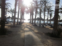ПЛЯЖ. Песочный и небольшими камешками, плавают рыбки, но мало. Хоть и говорят пляж маленький, но уютный. Мне хватило. Изобилие пальм, лежачки, волейбольная площадка, детская комната, место для игры в дарст и БОЧА (прикольная игра), пенная вечеринка, пирс, где проходит стэп-аэробика и танец живота с Ромео, а также, где живёт цапля. Примерно около 17 часов её можно покормить рыбкой. Кроме того, на пляже можно перекусить, выпить, поесть мороженое и всё бесплатно! Купаться кстати запрещено с 17 до 05 часов, поскольку вечером плавают опасные рыбки.