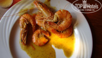 На самом пляже гриль бар. Готовят овощи на гриле. Нам понравились шампиньоны с рисом.