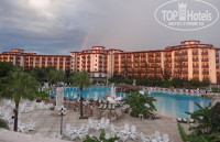 Если получится забронировать непосредственно этот номер, то бронируйте его!! Не пожалеете!! Балкон выходит на саму территорию (с горками, бассейнами, с ресторанами), и на пляж, и на речку между отелем и пляжем. Этот номер находится над самым большим крытым рестораном, справа от главного входа в отель.