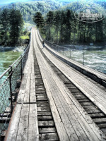 Из Новосибирска добирались на машинах, ехали около 8 часов. Брали 2 номера-студии. Уборка ежедневная, смена полотенец по просьбе, либо через день. Горный Алтай сам по себе не сравним с никаким регионом России. Напротив "Короны" мною любимый подвесной мост (Айский). Недалеко озеро Оя (красивое и просто чУдное!), там катались на лодках, ужинали на берегу.