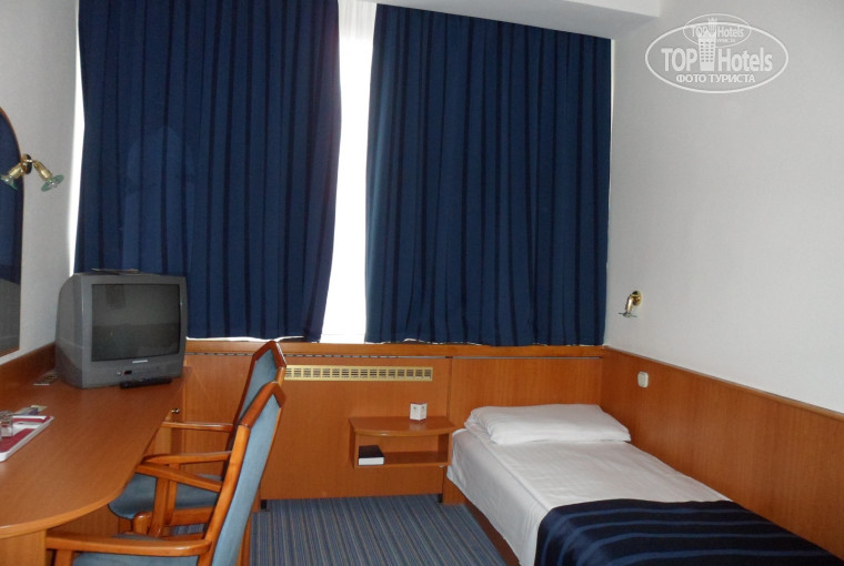 1) Не могу сказать, что номер был огромный, но места вдвоем хватало :) Единственное, почти весь стол занимал телевизор. Во второй раз, уж не знаю почему, по счастливой ошибке, наверное, нам дали люкс! Номер попросторнее, вид парадный, стол большой. Есть один русский канал.