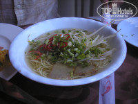 Еда - по-моему голодным остаться невозможно. Есть и местные блюда (особенно вкусен суп Фо, теперь скучаем по нему), и привычные европейские - спагетти, яичница или омлет, картошка фри, хлопья, овощи, фрукты (арбузы, ананасы, сердце дракона, бананы), выпечка. Соки, конечно, разводные, пить невозможно. Зато кофе действительно вкусный. В баре возле бассейна делают довольно вкусные коктейли.