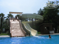 Территория. Территория отеля поделена на две части: на первой линии расположен основной корпус, ресторан, 2 бассейна, мини-клуб, детская площадка, рыбный ресторан, амфитеатр. Вторая территория находится через дорогу, переход по специальному тентованному мостику - идти буквально минут 5. Расселение происходит в домики-бунгало. Красивая зеленая территория, газончики, пальмочки. Тут расположен китайский и турецкий рестораны, бассейн с горками, детский мини-зоопарк. Здесь потише и поспокойнее, т.к. нет громкой музыки, развлекательных анимационных занятий и т.д. В общем и целом территория большая, зеленая, есть где погулять.