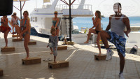 Утренняя гимнастика, степ, аква, дротики, боча, танец со всей командой аниматоров в море, латина, танцы живота, всего не упомнить.