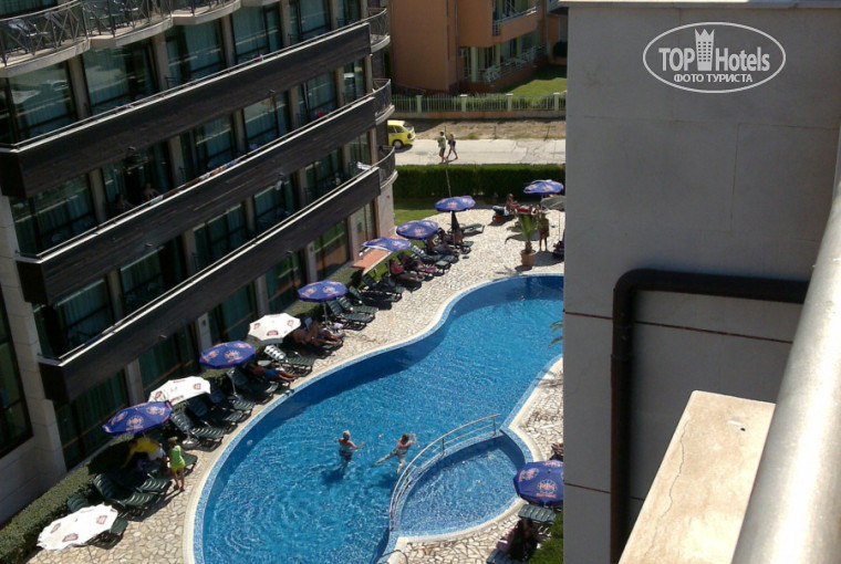 Территория у отеля небольшая, но в Болгарии это не важно. Понравилось, что бассейн отеля скрыт от посторонних глаз корпусами и зелеными насаждениями. Это создают комфорт и уют, если отдыхаешь у бассейна.