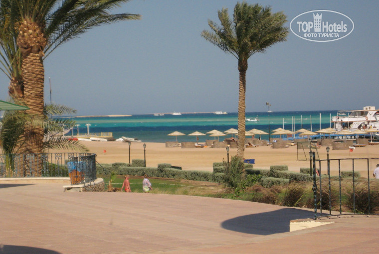 Пляж: лежаки надо действительно занимать очень-очень рано. Арабы примерно в 5.30 прибегают на пляж и занимают 40% лежаков, которые потом продают туристам по 1$ за лежак. В 6 часов лежаки ещё найти можно, а вот в 7.00, когда начинается завтрак, их уже надо искать далеко от центра. Вход в море очень пологий, мелкий песочек.