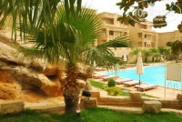 Территория отеля не большая, но очень уютная. Архитектурное решение очень соответствует нашему представлению о Египте, отель оформлен в фараонском стиле. Зелени много, за ней очень заботливо и тщательно ухаживают, стоит посмотреть на пустыню за забором, чтобы понять, сколько труда вкладывается ежедневно в эту красоту. Бассейнов четыре. С подогревом только один, но мы свободно купались и в холодных, водичка приятно бодрила. Есть фонтанчики и водопадики. Вечером и ночью включается красивая подсветка.