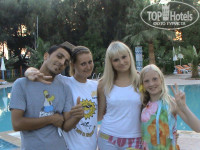 Мы в этом отеле отдыхаем третий год и в этом году купили путёвки в этот отель!!! Нам здесь очень нравится!!! Питание очень хорошее,есть всё,все виды мяса,вкусные салаты,фрукты!!! Классная выпечка,различные сладости...Персонал в отеле хороший,ребята воспитанные,знают русский язык!Море супер,заход в море тоже хороший,есть пирс!Анимация в отеле на высшем уровне,каждый день что-то новое,очень весело,смеёсся до слёз.Утром степ-аэробика,восточные танцы,водное поло,аква-аэробика!!! Вечером танцы,пенная дискотека,стриптиз!!! Сюда приезжают артисты,фокусники,восточные девушки ,ну вообщем здесь шеф отеля классный мужчина и его команда,они видно,что работают!!!Есть горки,территория большая ,зелёная,есть интернет,баня,игровые автоматы.На территории круглосуточно работает ресторан "Калинка-малинка!"Там работают классные девчёнки! Они классно готовят ,и если вы соскучились по русской еде,то пожалуйста!!!Ассортимент очень большой!!!Также есть блюда грузинской кухни!!!В отеле3 бассейна,есть детский,для малышек!Рядом с отелем есть рынок,магазины,где можно всё приобрести по доступной цене!!!Мы советуем этот отель,здесь круто отдыхать!!!Мы также путешествуем по Турции,ездили в Памукалле,там классно,были уже 2 раза,в этом году ещё поедем,были в Хераполисе,в Демре,в церкве Николая _чудотворца,на яхте плавали.В этом году хотим посетить Кеково!!! Здесь классные аниматоры-Вова Прокофьев,очень весёлый и приятный аниматор,Баби-Байрам,Тотти,Джансын,джино,хотелось бы ,чтобы они дальше нас развлекали!!!