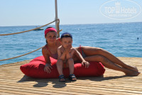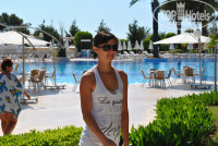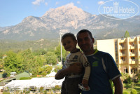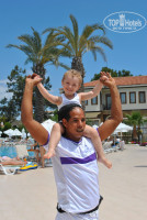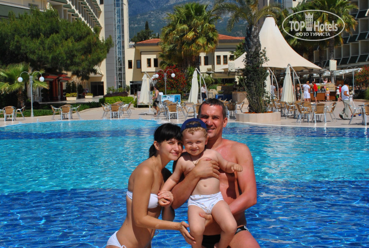 Здравствуйте! Отдыхали мы в этом хорошем отеле в мае прошлого года. Ездили с ребенком, 2 годика. Ехали очень долго 2,5 часа, устали. Приехали поздно, разместили в номера нас сразу и предложили покушать, был "поздний" ужин. Номер нам дали с видом на гору!!!! Очень красиво! Питание очень хорошее: мясо, рыба, фрукты (клубника, арбузы), сладости...все очень вкусно и с большим выбором! Были во всех ресторанах аля-карт. Турецкий - самый хороший!!! для детей - детское меню (картофельное пюре, сосиськи, фри, спагетти, клубника.....). На пляже есть ресторан, там то мы и обедали всегда. Там подают пасту, гамбургеры)))) Все очень вскусное)) А еще там тетечка сидит и делает турецкие лепешки. На барах хороший алкоголь, не разбавленный... шампанское, виски, коньяк, пиво....все очень достойно! Персонал отеля очень приветлив, как и анимационная группа! Отличный мини-клуб, девочки молодцы, очень чуткие и добрые к детям. На территории клуба есть детские горки. Территория отеля маленькая, но симпатичная. жалко, что нет водных горок, есть только для подростков (для маленьких и взрослых она не подходит). Детский бассейн для малышей находится всегда в тени (очень маленький, диаметром метра 3), поэтому вода там все время холодная, ни разу не видела там купающихся детей((( Море в это время прохладное, но уже к концу месяца вода прогревается до +24+25 градусов. Была в Турции 6 раз и только в хороших пятерках....Этот отель супер, но с детьми ехать не советую, так как нет детского бассейна. Вход в море - камни (крупные), многие детки этого не любят, только в спец обуви! да и ехать далеко от аэропорта(( А так, в целом, отель хороший!