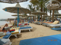Про пляж,оказывается,есть в Хургаде места,где до глубокой воды очень далеко,а здесь всё так,как надо.Бар,где можно перекусить и попить,в одном углу,и это хорошо,что пляж не длинный,а то надоест ходить.