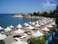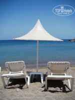 Пляж хороший, кристальная, прозрачная, теплая вода! Вход в море удобный, никаких камней не видели. С лежаками проблем ни разу не возникло, всегда были свободные - мы выходили на пляж не раньше 10 утра.