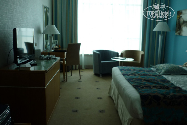 Комната точно как на картинках, большая двуспальная кровать. Виды из окна не слишком, но это не удивительно, все от комнаты зависит - да и не критично. В комнате - большой LCD телевизор (один русский канал - ОРТ), холодильник с мини-баром (я баром не пользовалась, только холодильником, депозит никто не брал).