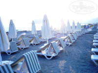 пляж чистый и, в сравнении с соседними пляжами отелей, широкий, в море видимо специально убирали камни,тк образована небольшая бухточка и волны чаще всего не смымают а разбиваются о волнорезы справа и слева, до пляжа ведет подземный переход, все цивильно, правда лежаки народ занимает сразу после завтрака полотенцами, что не честно. Неоднократно наблюдали как народ разлолжив полотенца идет обедать, а ведь кто-то в это время ищет местечко,но думаю такая проблема только при полной заполняемости отеля возникает, да и все равно худо-бедно место даже тогда можно найти.