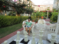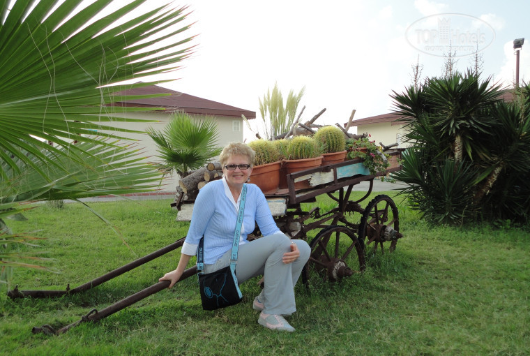 Теперь о территории. Садовники вкалывают весь день, все "вылизано" и ухожено, цветет и пахнет. Кстати, в Каппадокии (это не пляжная, а настоящая Турция) в полях только женщины, а мужики в это время пьют чай, гид Турок философски заметил, что они ждут урожая. Это скорее не Palm Beach, а какой то дендрарий где под каждым кустом табличка на латинице. Все утопает в зелени и смотрится гармонично. Территория большая, до моря надо идти, но это не напрягает.