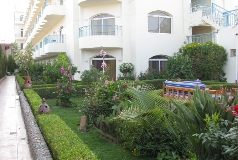 Территория отеля ухоженная, уютная, цветущая. Дорожки, скамеечки, вечером зажигают лампы в глиняных кувшинах и под пальмами, красиво...