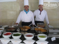 Питание было разнообразное, никогда не приедалось. На утро-- хлопья с молоком, яйца, яичница, колбаса со сладким перцем, сыры, колбаса соевая, выпечка очень вкусная, различные сорта хлеба, на обед, ужин -- супы два вида, мясо, рыба, гарниры (картофельное пюре, рис, просто и со специями, с маленькой вермишелькой, картофель-фри,картофель, запеченный в фольге, паста 2 вида, овощное рагу), на ужин каждый день делают что-нибудь на гриле-- куриный шашлык, кебаб, кролик, барашек, рыба в фольге; салаты, зелень, оливки, соусы--на завтрак, обед, ужин. Торты, пирожные, пудинги. Фрукты-- апельсины, гуава, маленькие бананы, финики. Голодными не останетесь.