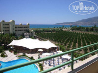 Ресторан: питание разнообразным назвать не могу, я бывала в трешках, где кормили лучше и богаче. Закусок нет в принципе, только тазики с нарубленными овощами и зеленью. На горячее - индейка и только индейка! За 12 дней мясо ели 2 раза и еще иногда бывала курица. Правда приготовленно все очень хорошо, тает во рту. Рыбу тоже подавали, но как это есть я не знаю... Честно пыталась два раза отведать рыбки - не получилась. Запах ужасный, и костей больше чем мяса. Из море продуктов больше не было ничего. Из фруктов только арбузы и дыни. Дыни не съедобные, а арбузы хорошие. По поводу all inclusive - первый раз встречаю в турции чтобы в систему "все включено" входили только водка, раки и джин, обычно бывают еще ром и коньяк местного производства. Но здесь так...Вино было нормальным только два для, все остальное время оно превращалось в винный уксус. И самое страшное - это МУХИ, которые достали больше всего. В ресторане мухи!!! И никто с ними не борется. И еще что неприятно поразило - грязная одежда официантов.