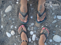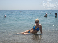 Море находится минут 7 пешком. Можно через торговую дорогу идти или через отели. Пляж - галька, если прогуляться слева от пляжа найдете песочную гору. Шезлонг всегда себе находили, а иногда и вовсе загорали на территории другого отеля)