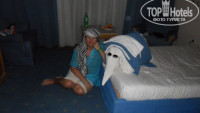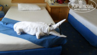 2. Уборка. Убирались чисто, каждый день меняли полотенца, даже прибирали наш бардак, но почему то мою ночную комбинацию все время доставали из-под подушки и заботливо развешивали на спинке стула.....после того как я два раза оставила 1 евро чаевых в нашей комнате появился сначала крокодил, а затем слон......(из полотенец и подушек), а вот без чаевых не было никого...(фото ниже)