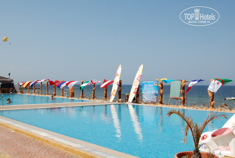 Море теплое, но очень грязное. В нем КУЧА водорослей, которые образуют полосу препятствий до нормальной воды. Но и в этой воде вас ожидает сюрприз – медузы. Маленькие, с крестиком, их не всегда увидишь, но ожог на коже почувствуешь). В таком случае нужно промыть ужаленное место соленой водой, хорошо потереть песком, а потом помидором, который (благо!) можно взять на кухне. Водоросли периодически убирает ослик з повозкой или трактор. Еще есть бассейны: с соленое водой(на самом деле в ней тоже есть хлорка, и, честно говоря, я ни разу не видела чтобы его чистили, хотя почти всегда просыпалась раньше всего персонала), хлорированный большой (с горками) и маленький (для детей) + тоже есть маленький с соленой водой. Любителям подышать на пляже вечером нужно иметь ввиду, что пляж иногда закрывают (там что-то типа калитки есть). Кстати, охранник на пляже добрый.